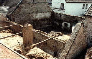 Als im Frühjahr 1988 dem Besitzer der alten Gilcherpeterschen Scheune, Bernhard Schmitt, ein Abrissbescheid mitgeteilt wurde, war guter Rat teuer. Die im Rahmen des Wettbewerbs "Unser Dorf soll schöner werden" anwesende Kommission der Bezirksregierung aus Neustadt bestärkte den Gemeinderat, den geschlossenen Straßenzug nicht durch den Abriss der aus dem Jahre 1750 stammenden Scheune zu zerstören und eine Baulücke zu verhindern. Die alte Scheune wurde als dorftypisch und erhaltenswert anerkannt.Die finanzielle Unterstützung zur Erhaltung war jedoch an eine spezielle Nutzung gebunden. Bei der Suche nach einer regionalspezifischen Thematik wurde die Idee eines Auswanderermuseums geboren. Die Scheune wurde von Bernhard Schmitt für den symbolischen Wert von einer Mark verkauft. Nun war der Weg für die Neugestaltung des Gebäudes frei.Abriss der Gilcherpeterschen ScheuneDas Architektenteam Peter Dahl und Thomas Venzke wurde mit der Planung des Museums beauftragt, und im November 1988 lag der erste Entwurf vor. Ein Jahr später wurde mit den Abrissarbeiten begonnen.Am 6. November 1993 wurde das Museum dann feierlich eingeweiht.